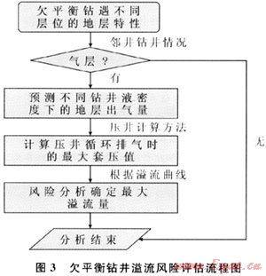 欠平衡鉆井溢流風(fēng)險評估的核心是:根據(jù)欠平衡井鉆遇的地層特性,預(yù)測不同欠壓值下的地層出氣量,再通過壓井計算確定循環(huán)排氣時的最大套壓值,最后判定允許的溢流量及關(guān)井時間(圖3)。