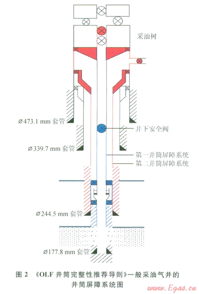 2)鑒于“深水地平線事件”教訓和近年來環(huán)空帶壓的研究,《OLF井筒完整性推薦指南》將一般采油氣井的井筒屏障系統(tǒng)的第一安全屏障延伸到尾管部分,即尾管掛及尾管封隔器、尾管套管及固井,設置了多重屏障。