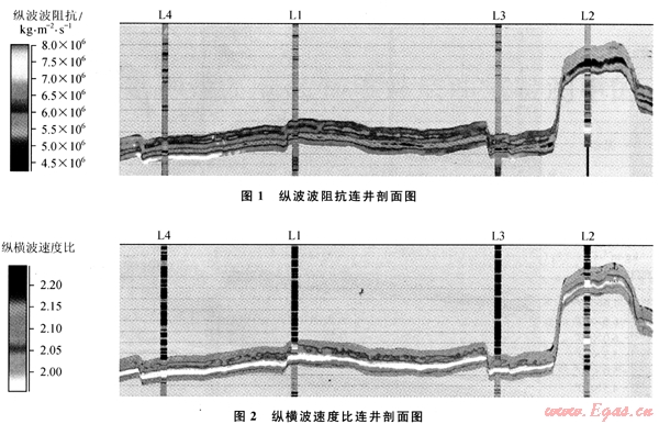 由于L氣田井?dāng)?shù)目相對(duì)較少,為了提高反演結(jié)果在空間上的可靠性,算法上選擇了將疊前AVA同步反演結(jié)果作為趨勢(shì)約束的基于序貫高斯協(xié)模擬技術(shù)的隨機(jī)反演方法。在此,地震數(shù)據(jù)和井?dāng)?shù)據(jù)一樣作為硬數(shù)據(jù)得到重視,反演結(jié)果同時(shí)符合測(cè)井、地震和輸入的數(shù)據(jù),并且受建立的地質(zhì)模型的約束。