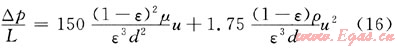 計算顆粒床層阻力采用經典Ergun方程: