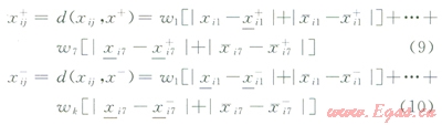 x(ij)+、x(ij)-分別為7個指標(biāo)區(qū)間變化范圍的最大、最小值;