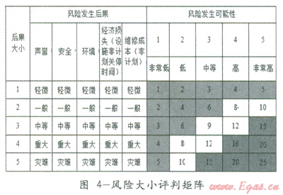 管道的風(fēng)險評價可使用定性、半定量或定量的方法進行。設(shè)計數(shù)據(jù)、管道運行數(shù)據(jù)及檢測數(shù)據(jù)等應(yīng)作為評估的基礎(chǔ)數(shù)據(jù)。風(fēng)險評價是進行檢測、監(jiān)控和完整性管理的基礎(chǔ)。因此,對管道進行風(fēng)險狀況評價后必須進行風(fēng)險等級劃分。即完成運行期管道風(fēng)險狀況評估后,給出一個風(fēng)險劃分的標(biāo)準,把不同風(fēng)險狀況的管道進行歸類。