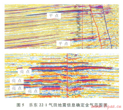這一評(píng)價(jià)思路慕于以下幾點(diǎn)認(rèn)識(shí):①“模糊區(qū)”的形成可能是由淺層氣屏蔽和熱流體造成;②“模糊區(qū)”在時(shí)間剖面上的下凹,很可能是速度陷阱造成的假象,可能是構(gòu)造的高部位;③從沉積相分析,該區(qū)儲(chǔ)層可能是連片分布的,也就是說“模糊區(qū)”內(nèi)可能存在儲(chǔ)層;④該區(qū)域已發(fā)現(xiàn)的東方1-1氣田和樂東l5-1氣田的含氣范圍在地震資料上都有平點(diǎn)或亮點(diǎn)等異常特征,該氣田可能也存在這一特征。