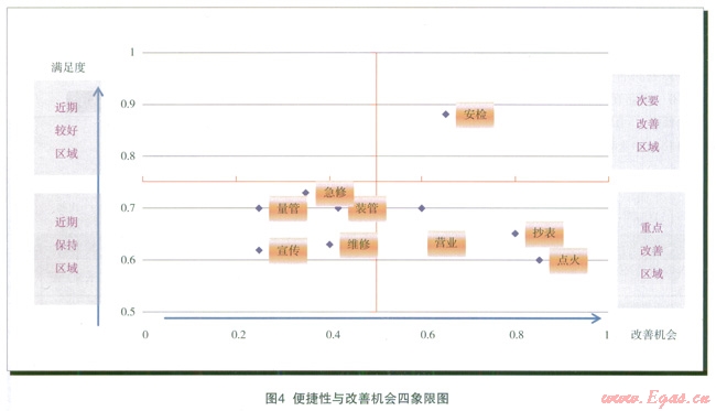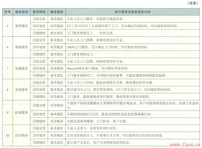 以客戶需求分析為導(dǎo)向的服務(wù)改善促進(jìn)機(jī)制,是通過卡諾模型和三環(huán)六步法等管理工具,細(xì)分客戶需求,結(jié)合企業(yè)服務(wù)現(xiàn)狀,尋找服務(wù)改善機(jī)會(huì),足以客戶需求為導(dǎo)向的管理理論與公司實(shí)際業(yè)務(wù)相結(jié)合的重要環(huán)節(jié),也是制定全年的重點(diǎn)服務(wù)工作和過程改進(jìn)體系的重要參考依據(jù)。“客戶需求分析”和“服務(wù)改善促進(jìn)機(jī)制”是以客戶需求為導(dǎo)向的管道燃?xì)鈨?yōu)質(zhì)服務(wù)模式從理論探索邁向?qū)嵺`的重要內(nèi)容和標(biāo)志。