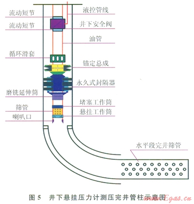 2)井下懸掛壓力計(jì)測壓完井管柱能夠滿足井簡安全控制、井下動(dòng)態(tài)檢測的要求。