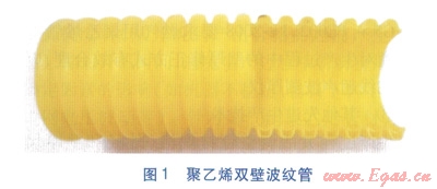 波紋管管材為中密度聚乙烯(MDPE)材料,一般適宜應用在低壓管道。有別于普通聚乙烯管,聚乙烯雙壁波紋管見圖1。波紋管采用較薄的雙壁設計,外壁呈波浪狀,能維持管道形狀,防止穿越彎頭時管道折疊;內壁較平滑,使燃氣流動時摩擦造成的壓力損失降至最低。波紋管有相當高的柔韌性,大大加強插管時穿過彎頭的能力,最多可穿過2~3個90°彎頭,每次插管操作可更換10~15m長的鍍鋅鋼管。使用波紋管修復取代傳統(tǒng)開挖修復,能減少地面開挖及對庭院環(huán)境的破壞,還可降低修復成本,加快修復進度。