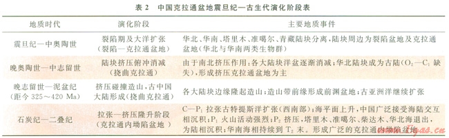 中國(guó)克拉通盆地演化共分4個(gè)階段(表2),塔里木、華北、揚(yáng)子等古生代克拉通盆地演化特征如圖2所示[3-6]。