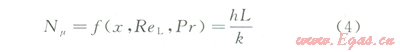 通過式(4)和(5)將對流換熱系數(shù)(h)的問題,轉為解決努賽爾系數(shù)的問題。