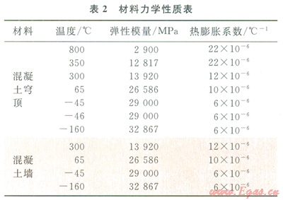 在外界溫度變化下,儲罐內(nèi)的LNG達到沸點蒸騰,從而產(chǎn)生氣壓。為保護混凝土外罐免受不斷增加的氣壓作用,需通過穹頂上部的安全閥將超壓的LNG蒸氣排出。在此過程中,LNG蒸氣或被點燃發(fā)生火災。在這種偶然工況下,國內(nèi)現(xiàn)有的混凝土規(guī)范尚無規(guī)定,而國外的ENl473等規(guī)范僅給出一般性的條款,沒有具體的計算公式。所以發(fā)生安全閥火災時,儲罐各部位的溫度怎么分布?火災導致的混凝土熱應變是否達到了極限應變等,這些需借助大型有限元軟件進行詳細的熱力學分析才能得到,指導后續(xù)設計工作。
