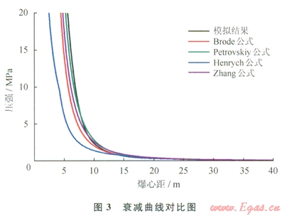 1)本文模擬過程中沖擊波荷載的峰值和衰減曲線與4種經(jīng)驗(yàn)公式基本一致,滿足工程精度要求。