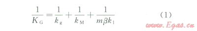 為膜阻力;為液相側(cè)阻力,m為相平衡常數(shù),b為化學(xué)增強(qiáng)因子,K1為液相傳質(zhì)系數(shù)。