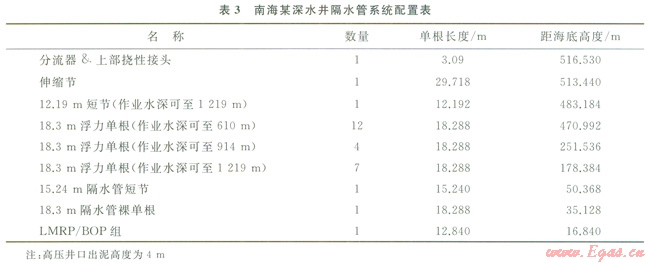 根據(jù)上述隔水管系統(tǒng)配置可以很方便形成隔水管下放列表,用以指導現(xiàn)場作業(yè)。