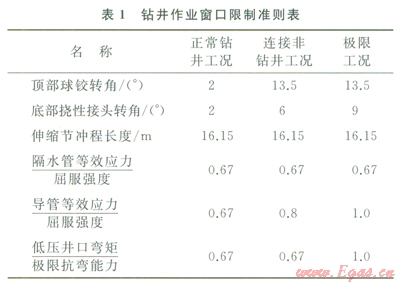 為此,需要首先明確鉆井作業(yè)窗口的確定準則,參考API RP l6Q規(guī)范[10]和相關研究成果[5,11],確定的鉆井作業(yè)窗口限制準則見表l。