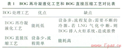 1 不同的BOG處理工藝對(duì)比