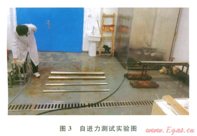 用以下實(shí)驗(yàn)方法研究多孔射流鉆頭自進(jìn)力的影響規(guī)律:①改變柴油機(jī)轉(zhuǎn)數(shù)的方法來調(diào)節(jié)泵排量,研究流量參數(shù)對射流鉆頭自進(jìn)力的影響規(guī)律;②更換多孔射流鉆頭的方法來改變射流鉆頭正反流量比,研究正反流量比參數(shù)對射流鉆頭自進(jìn)力的影響規(guī)律;③調(diào)節(jié)射流鉆頭與模擬井底之間的距離,研究正向噴距參數(shù)對多孔射流鉆頭自進(jìn)力的影響規(guī)律;④更換模擬井筒的方法來改變井簡直徑,研究井筒直徑參數(shù)對多孔射流鉆頭自進(jìn)力的影響規(guī)律。