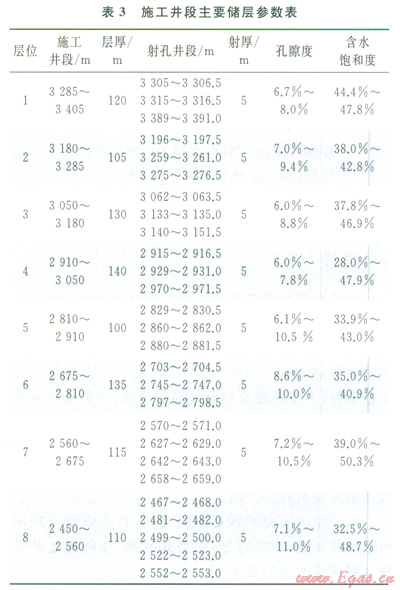 實例井是l口水平開發(fā)井,完鉆井深3425m,入靶點井深2535m,人工井底深度3405m,水平段總長890m,地層壓力為38.4MPa,地層溫度為88℃,儲層巖性為灰白色細砂巖。各施工井段主要儲層參數(shù)如表3所示。采用新型速鉆復合橋塞分8段壓裂,施工注入方式為Æ114.3mm光套管注入。