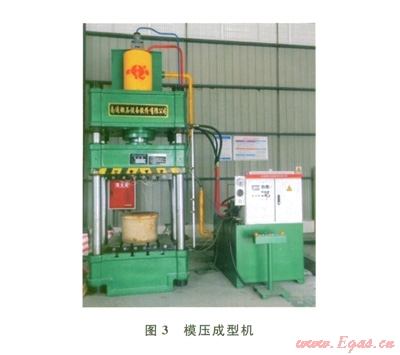 模壓成型工藝是將預混料或預浸料經(jīng)加熱、加壓固化成型的方法。把浸過膠的高強纖維布經(jīng)過烘爐烘至半干,檢測其含膠量。若含膠量不符合要求,則調(diào)整膠輥增加或減少含膠量。把檢測合格的纖維布裁成布片,裁片數(shù)量按照制品厚度與單層厚度計算所得,通常厚度比理論厚度增加0.5mm為合適。調(diào)整纖維布鋪層及鋼板,推入模壓機模壓成型。