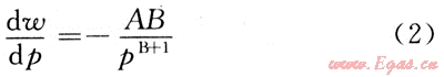 在氣井卸壓生產(chǎn)的過程中地層溫度基本恒定,影響天然氣中蒸汽含量變化的主要是壓力,當(dāng)不考慮溫度的影響時,對式(1)求導(dǎo)得: