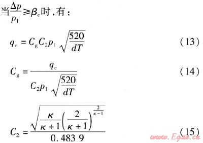 時(shí),為亞臨界狀態(tài),必須考慮氣體的可壓縮性,否則引起較大誤差。為此需要考慮氣體密度的變化,引出氣體密度的膨脹系數(shù),此時(shí)常用的公式為: