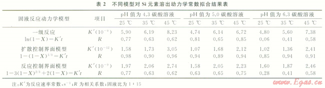 根據(jù)擴(kuò)散控制界面模型擬合得出的不同溫度條件下(25℃、35℃、45℃)反應(yīng)速率常數(shù),見表3。
