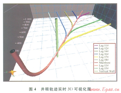 5)鉆井叮視化模塊。實現(xiàn)地面和井下信息的3D可視化,給技術人員和管理人員形象直觀地顯示實時數(shù)據(jù),輔助決策。3D可視化應實現(xiàn)包括實時井眼軌跡、實時地質模型和實時井眼狀況等整個鉆井過程的實時可視化,最終還應該能夠實現(xiàn)從地面設備到井下環(huán)境的一體化仿真。