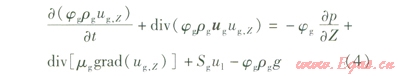 式中ug,R——氣相速度在尺方向的分量,m/s