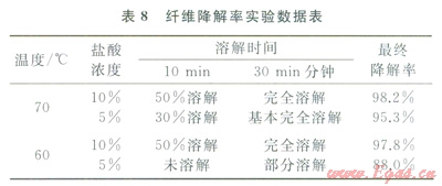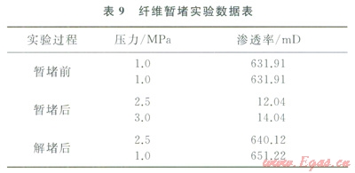 通過試驗數(shù)據(jù)(表8)可以看到,在60℃以上,纖維在鹽酸中能夠很好地降解。暫堵后,纖維能夠顯著降低巖心的滲透率,通過酸化解堵,巖心滲透率能夠完全恢復(表9)。