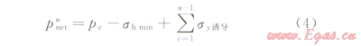 基于第1條裂縫應(yīng)力分析基礎(chǔ),對下一條形成的裂縫進行應(yīng)力分析,由于應(yīng)力陰影效應(yīng),第2條裂縫凈壓力的模型為: