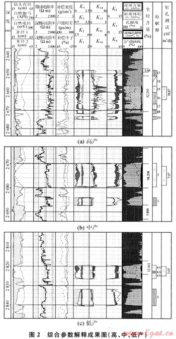 摘要:大牛地氣田上古生界砂巖具有低孔、低滲、低豐度氣層的特點,應(yīng)用測井綜合特征參數(shù)對盒3段儲層的低孔、低滲及含氣性進行了敏感性分析,構(gòu)建了氣層類型的標準;在與氣層實測無阻流量對比的基礎(chǔ)上,建立了高、中、低產(chǎn)能的判別標準;選擇對產(chǎn)能預(yù)測貢獻大的比值參數(shù)與實測無阻流量進行擬合,得到了無阻流量的預(yù)測公式。現(xiàn)場驗證表明,該技術(shù)對識別儲層的產(chǎn)能高低具有快速、簡便、實用、可信的特點。