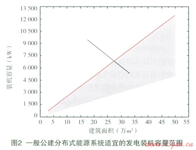 在實(shí)際項(xiàng)目實(shí)施中,如果沒有足夠資料對供能對象做詳細(xì)的負(fù)荷分析,可結(jié)合相關(guān)技術(shù)規(guī)定及已有項(xiàng)目運(yùn)行經(jīng)驗(yàn)簡單確定發(fā)電機(jī)組的容量。對于一般公共建筑,可根據(jù)其功能特點(diǎn),按照設(shè)計(jì)電負(fù)荷的20%~50%選擇發(fā)電機(jī)組容量,全年負(fù)荷較為穩(wěn)定的建筑取上限,負(fù)荷波動較大的建筑取下限,如圖l所示。