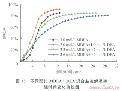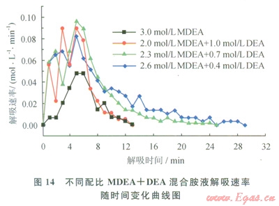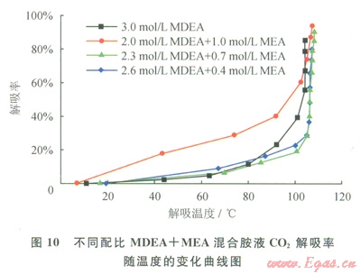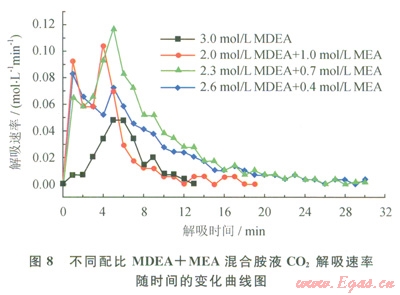 3.4 不同配比MDEA+DEA混合胺液對(duì)CO2的解吸性能