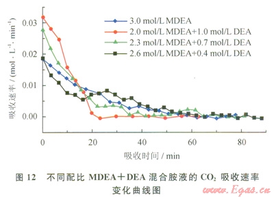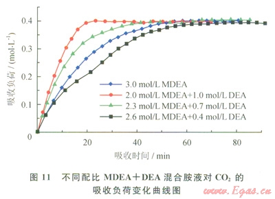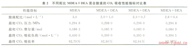 3.3 不同配比MDEA+DEA混合胺液對(duì)CO2的吸收性能