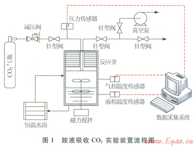 CO2青島天源特種氣體廠,純度99.999%;MDEA,天津天泰精細(xì)化學(xué)品有限公司,工業(yè)級(jí);MEA,天津天泰精細(xì)化學(xué)品有限公司,分析純;DEA,天津市科密歐化學(xué)試劑開(kāi)發(fā)公司,分析純;CaCl2,國(guó)藥集團(tuán)化學(xué)試劑有限公司,分析純;H2SO4,廣東省精細(xì)化學(xué)品工程技術(shù)研究開(kāi)發(fā)中心,分析純。