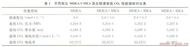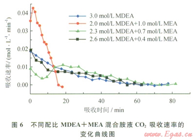 3.1 不同配比MDEA+MEA混合胺液對(duì)CO2的吸收性能