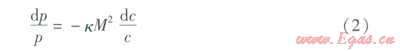方程(2)為促使蒸汽流速改變的力學(xué)條件,說明蒸汽在噴嘴中的流速和壓力變化方向相反,蒸汽噴嘴是通過蒸汽流膨脹以獲得高速流動的流體機(jī)械部件。