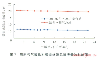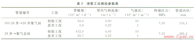 管內(nèi)氣相流速、原料氣氣液比等參數(shù)對清管過程中的管內(nèi)流體瞬態(tài)流動狀況具有重要影響。為此,以001-26井®26井集氣站和28井®集氣總站2條氣液混輸管道為例,分別對這2條管道開展管內(nèi)氣相流速和原料氣氣液比等參數(shù)的敏感性分析,以考察其對清管過程的影響。