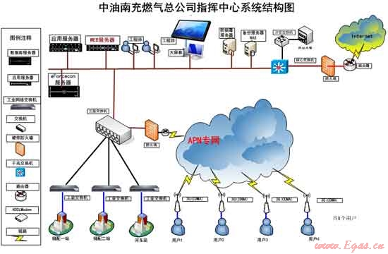 中油南充燃?xì)庥邢挢?zé)任公司生產(chǎn)運(yùn)行管理系統(tǒng)(調(diào)控中心)架構(gòu)如下圖: