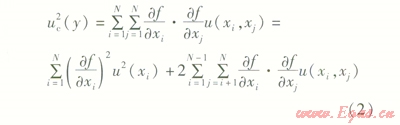 式中偏導數(shù)¶f/¶xi為Xi=xi時導出的,稱為靈敏系數(shù),符號為ci,表示估計值xi的微小變化dxi所引起的y的變化。輸入量Xi的標準不確定度u(xi)可以通過A類或者B類評定獲得。協(xié)方差u(xi,xj)可通過下式確定: