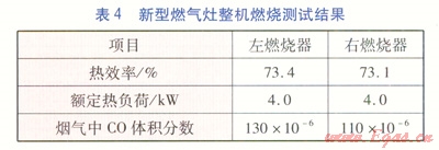 將以上改進方法進行綜合應用,新型燃氣灶整機燃燒測試結果(鍋支架高度為28mm)見表4。