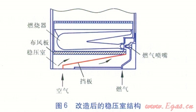 由風(fēng)機(jī)送入的空氣需要通過穩(wěn)壓室、布風(fēng)板進(jìn)行均勻布風(fēng),以保證燃?xì)庖豢諝饣旌衔镌诨鹋派险H紵?。燃燒器?nèi)空氣與燃?xì)獾木鶆蚧旌?,能夠避免燃?xì)馊紵煌耆?,繼而產(chǎn)生有毒有害物質(zhì)的現(xiàn)象,從而提高熱水器安全性能。