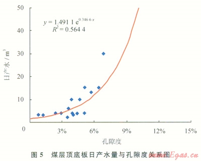 煤層直接頂?shù)装鍨樯皫r時,物性較好,且砂巖厚度越大,則頂?shù)装迳皫r的含水性越強(qiáng),煤層壓裂后頂?shù)装迳皫r的地層水易于產(chǎn)出,排采出水量亦較大。如果砂巖為老頂?shù)?,但直接頂?shù)装宓哪鄮r較薄,壓裂時容易壓穿直接頂?shù)装宓哪鄮r,致使壓裂縫溝通了老頂?shù)椎纳皫r而增大出水量,且隨著砂巖距煤層越近,越易于壓穿直接頂而溝通砂巖含水層,為此,頂?shù)装迳皫r的厚度、孔隙度及距煤層的距離與煤層排采出水量有較大的關(guān)系。