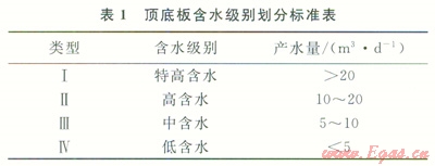 諸如上述煤層頂?shù)装搴墑e劃分方法,對研究區(qū)煤層含水級別進(jìn)行了劃分(表2)。