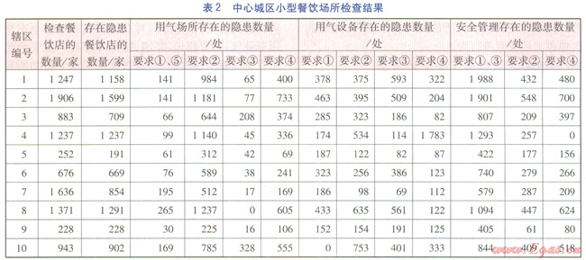 按照《武漢市燃?xì)夤芾項(xiàng)l例》規(guī)定,武漢市的市、區(qū)城管部門為燃?xì)庑姓鞴懿块T,市、區(qū)城管部員兼有燃?xì)鈭?zhí)法職能?;诒?span lang="EN-US">1內(nèi)容,對(duì)各城區(qū)城管隊(duì)員進(jìn)行培訓(xùn),組織城管隊(duì)員進(jìn)行用氣安全檢查。檢查時(shí)間從2013年1月開始,春節(jié)前結(jié)束。中心城門下設(shè)燃?xì)夤芾磙k公室,實(shí)行分級(jí)管理,所有城管隊(duì)員兼有燃?xì)鈭?zhí)法職能?;诒?span lang="EN-US">1內(nèi)容,對(duì)各城區(qū)城管隊(duì)員進(jìn)行培訓(xùn),組織城管隊(duì)員進(jìn)行用氣安全檢查。檢查時(shí)間從2013年1月開始,春節(jié)前結(jié)束。中心放大器上型餐飲場(chǎng)所檢查結(jié)果見表2。