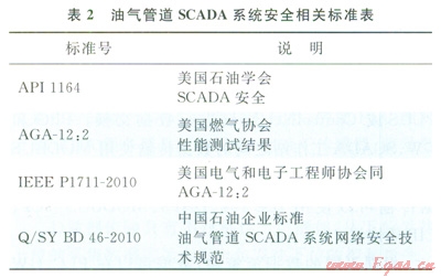 針對上述數(shù)據(jù)傳輸存在的風險進行安全防護設(shè)計時,應(yīng)當遵循日前已有的油氣管道SCADA系統(tǒng)安全相關(guān)標準。表2中列舉了本文參考文獻的主要標準[10-13]。