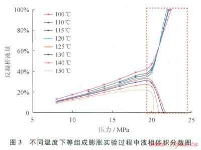 6)測試8個(gè)不同溫度點(diǎn)的等組成膨脹實(shí)驗(yàn),觀察并記錄流體的泡、露點(diǎn)變化。