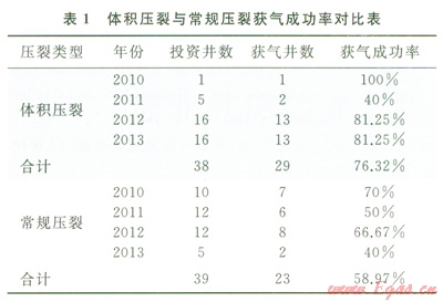 4.2 體積壓裂與常規(guī)壓裂獲氣成功率評價