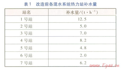 以青島市敦化路區(qū)域供熱蒸汽改高溫水工程為例,本區(qū)域內(nèi)原有的13座用戶熱力站以華電發(fā)電廠的蒸汽為熱源,改造后新建l座高溫水首站,13座用戶熱力站以首站高溫水為熱源,其中7座用戶熱力站采用混水系統(tǒng)供熱(如圖1所示),6座用戶熱力站采用間接換熱系統(tǒng)供熱。該工程改造完成后,供暖面積將達(dá)到192.6×104m2。在供熱規(guī)模不變的情況下,與原供熱方式相比,一級熱力管網(wǎng)(高溫水管網(wǎng)比蒸汽管網(wǎng)熱損失率大幅度降低)改造后節(jié)約標(biāo)準(zhǔn)煤量為2125.9t/a,凝結(jié)水回收節(jié)約標(biāo)準(zhǔn)煤量為1497.4t/a,新建高溫水首站增加電力能耗量折合節(jié)約標(biāo)準(zhǔn)煤量為-44.7t/a,綜合計算這3項得出每年降低煤耗折合標(biāo)準(zhǔn)煤量為3578.6t/a,可減少二氧化硫排放量為74t/a,減少煙塵排放量為18t/a,減少氮氧化物排放量為37t/a,減少二氧化碳排放量為9198t/a。該項目的實施具有良好的節(jié)能效益和環(huán)境效益,符合國家環(huán)保政策,通過該項目的實施可全面提升企業(yè)的能源綜合利用率,實現(xiàn)環(huán)境效益、社會效益和企業(yè)經(jīng)濟(jì)效益的協(xié)調(diào)統(tǒng)一。