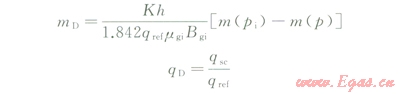 氣體具有強(qiáng)可壓縮性,其黏度(mg)、偏差因子(Zg)、體積系數(shù)(Bg)等都是關(guān)于壓力的強(qiáng)非線(xiàn)性函數(shù),如果直接對(duì)氣體滲流控制方程中的擴(kuò)散系數(shù)進(jìn)行強(qiáng)行近似必然會(huì)引起較大的誤差。使用擬時(shí)間函數(shù)(tg)能夠?qū)怏w滲流問(wèn)題等效轉(zhuǎn)化為液體滲流問(wèn)題,同時(shí)改進(jìn)了“強(qiáng)行近似擴(kuò)散系數(shù)(1/jmgcg)為常數(shù)”的假設(shè)條件,結(jié)果必然使得理論描述更接近于礦場(chǎng)實(shí)際情況,也方便液體研究領(lǐng)域內(nèi)成果的參考和借鑒。其中,擬時(shí)間定義為: