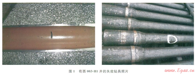 筆者從中國石油川慶鉆探工程公司(以下簡稱川慶鉆探)的2013年度鉆具疲勞失效分析會議注意到:茍西003-H1井[1]一共發(fā)生14次在鉆桿過渡帶消失區(qū)的刺穿失效,其中9次為連續(xù)發(fā)生的,更換不同廠家鉆具無效。而鄰近2口井采用同廠家的鉆具則沒有發(fā)生任何失效,不同的是該井造斜點僅為300m,但井斜不大且發(fā)生失效段狗腿度也不大。這種明顯的周期性鉆具累積疲勞破壞近年時有發(fā)生,主要與井身軌跡復雜有關(guān)[2],應重點考慮淺井段造斜作業(yè)的影響。以此作為一種失效類型進行統(tǒng)計,力求分析得出結(jié)論,既可以為施工作業(yè)進一步預防和避免此類失效提供思路,也可以為設計部門借鑒。