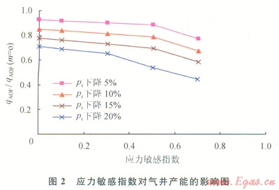 3.1 應力敏感指數對氣井無阻流量的影晌